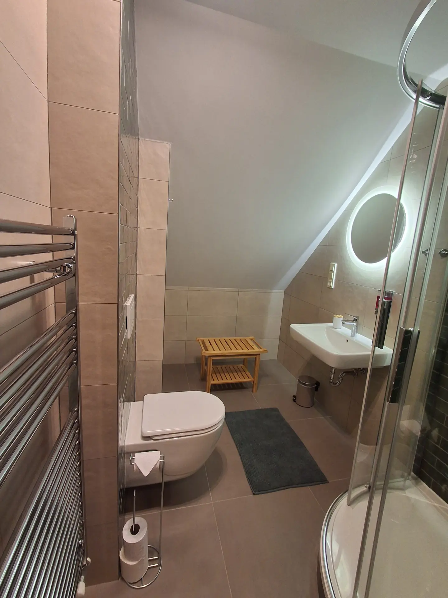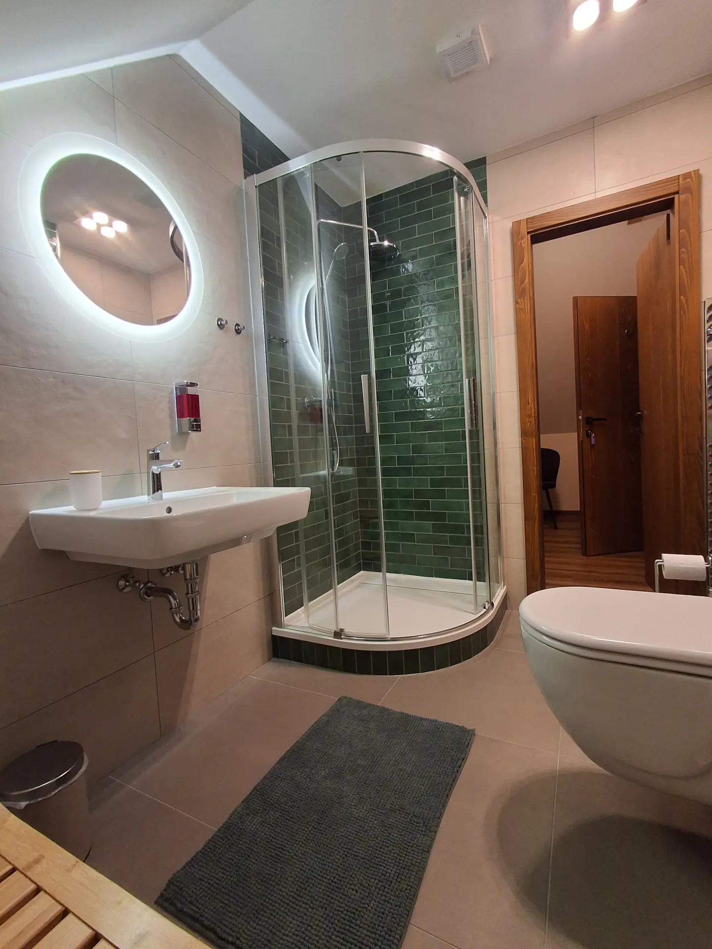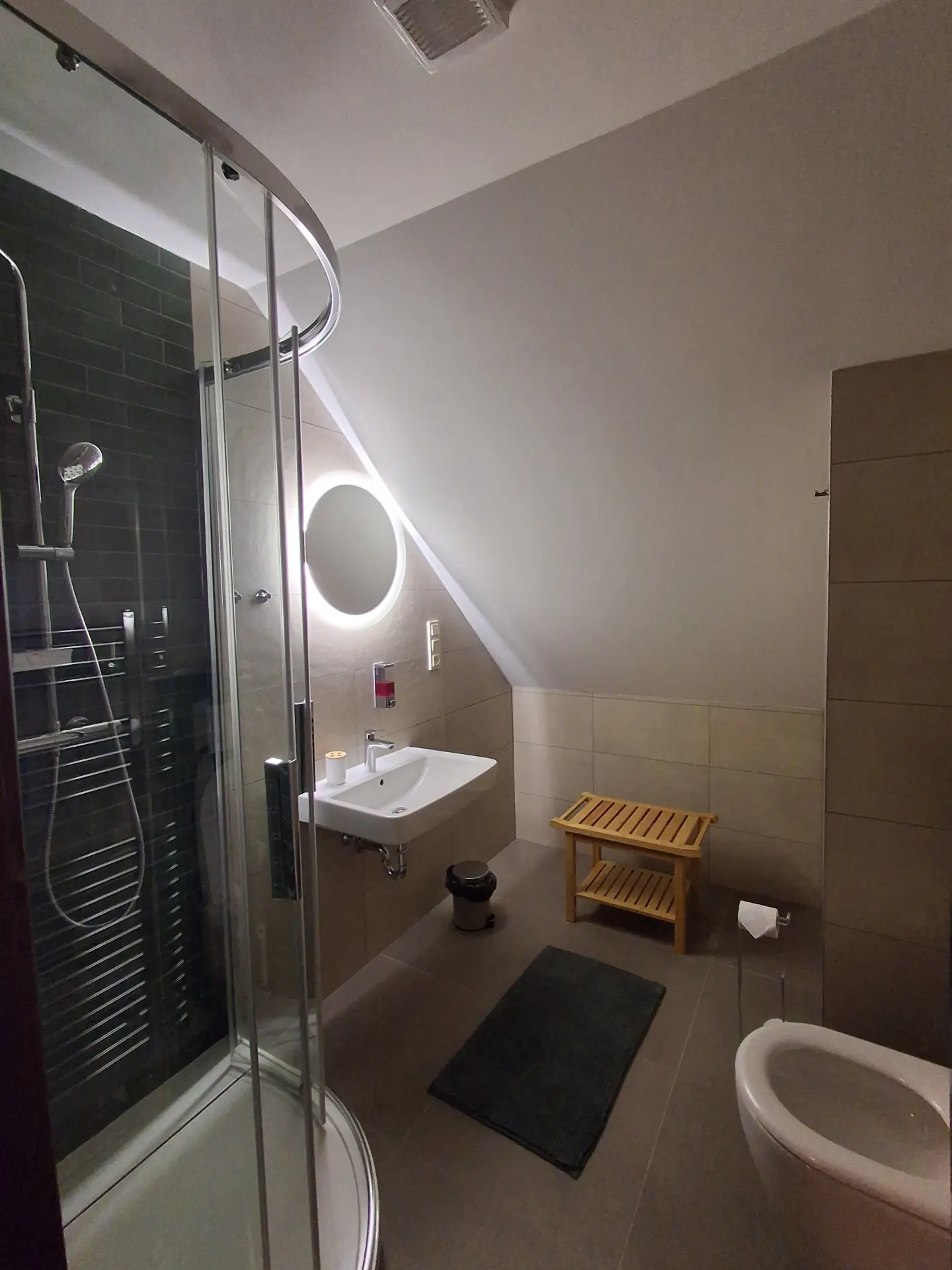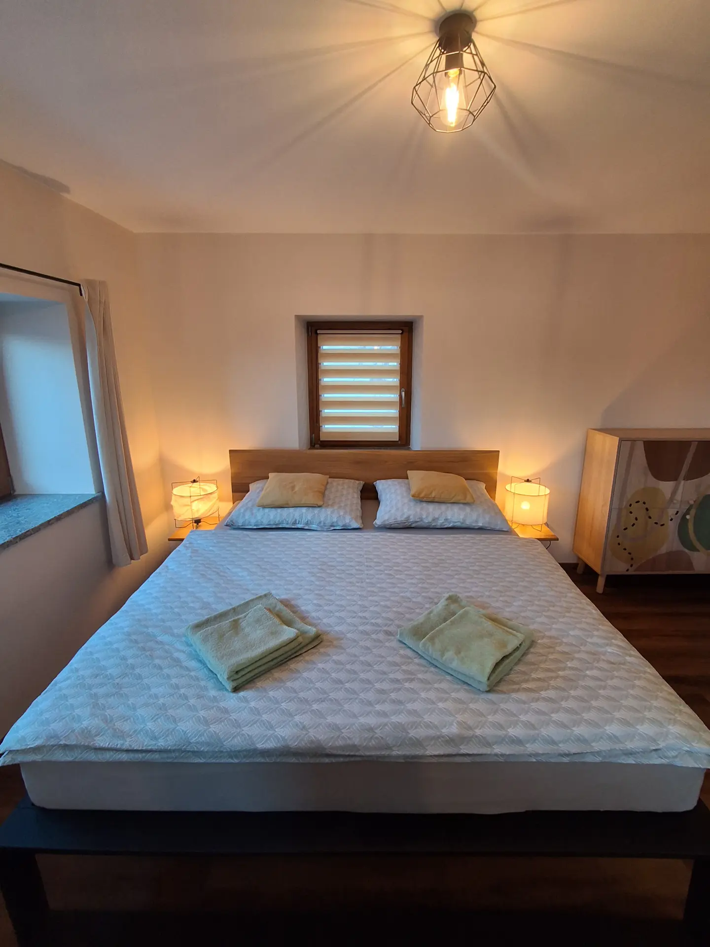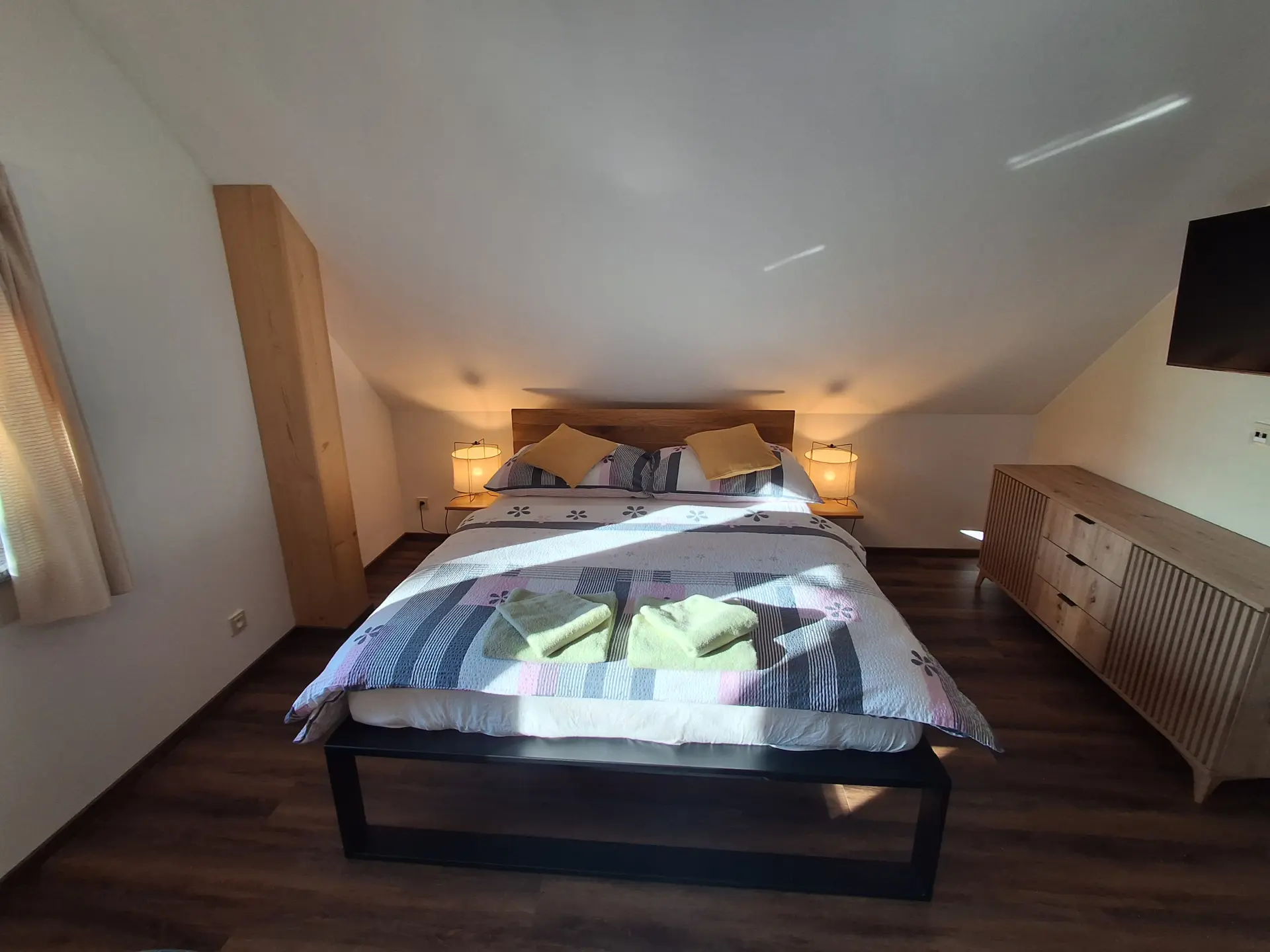 Apartmán v 1. patře počet ubytovaných osob max. 4 - postel 180 x 200cm přistýlka 160 x 200cm. Plně vybavená kuchyň - indukční deska, mikrovlnná trouba, lednice, myčka. Samostatná ložnice, koupelna. Televizor, samostatné připojení k internetu, velikost 34 m2, pěkný výhled na Jizerské hory.